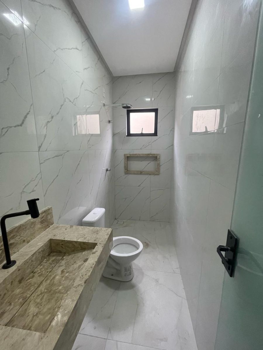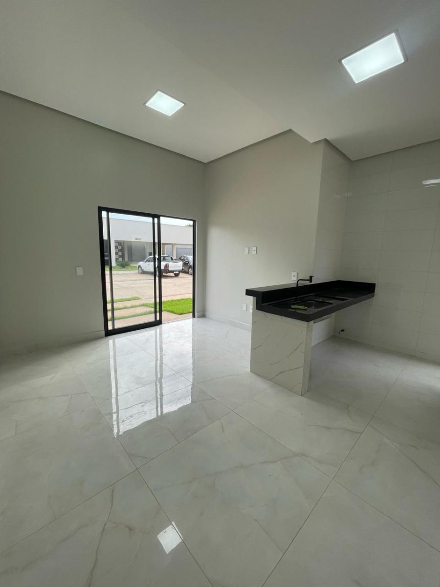 Esta casa térrea impressiona pelos detalhes: ambientes com piso em porcelanato marmorizado de alto brilho, iluminação em LED e um design que privilegia o conforto e a sofisticação.